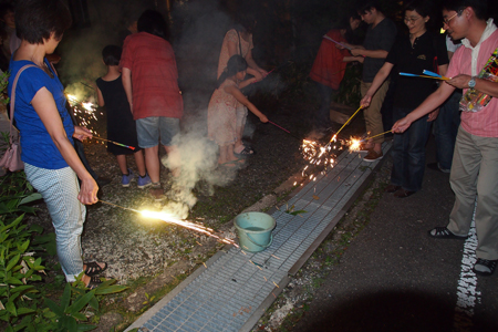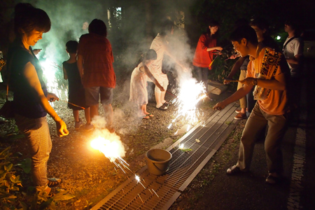 夏はこれ!花火です。周りは林(森?)なので、打ち上げ花火は禁止。