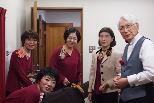 発表会開始前、みんなで『がんばろ~!』のガッツポーズ。若干「招き猫風」の方もおられますが・・・(笑)