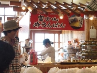 お~、名物の富士山メロンパンですね。 いよいよ登山開始。まずは、六合目をめざして! その前に、ガイドさんの話をしっかり聞きます。 六合目の山小...