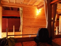 山小屋も新しくてきれい。 昼食?夕食?微妙な時間に食事。 大自然の中でのバーベキューです。